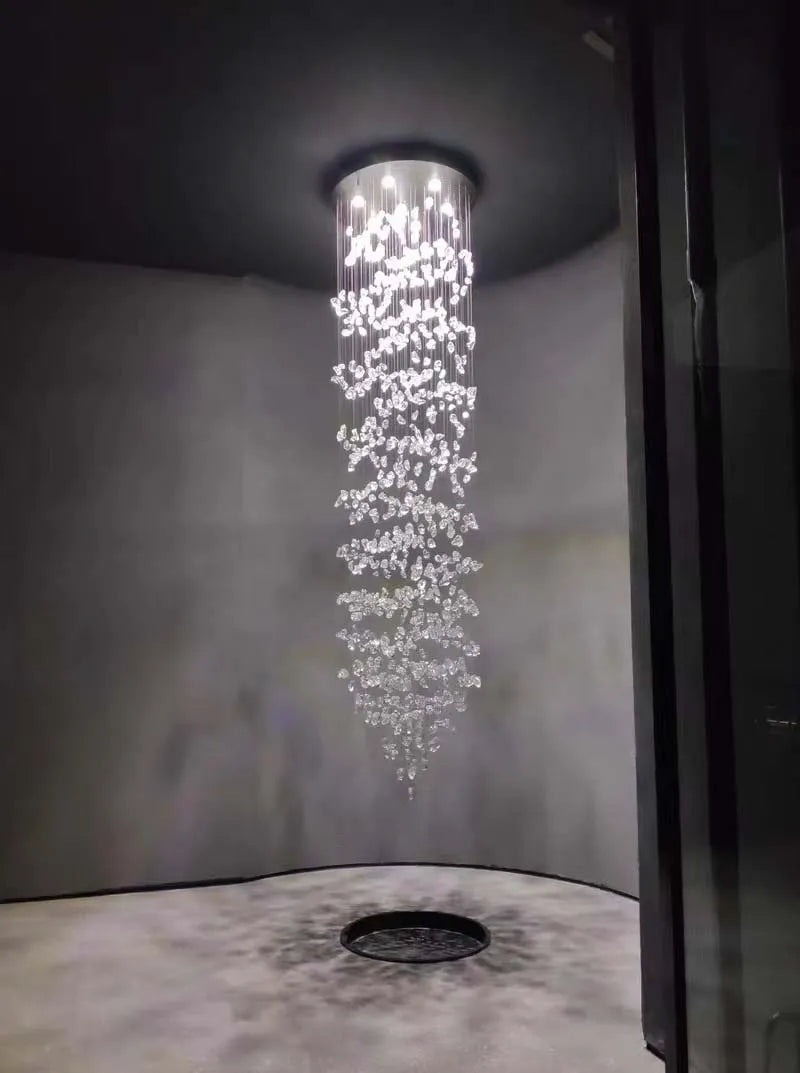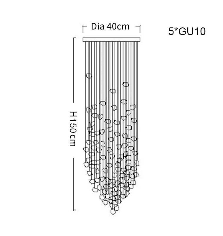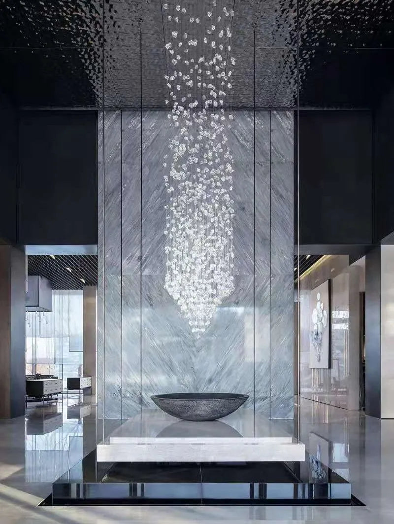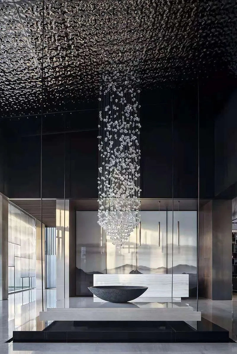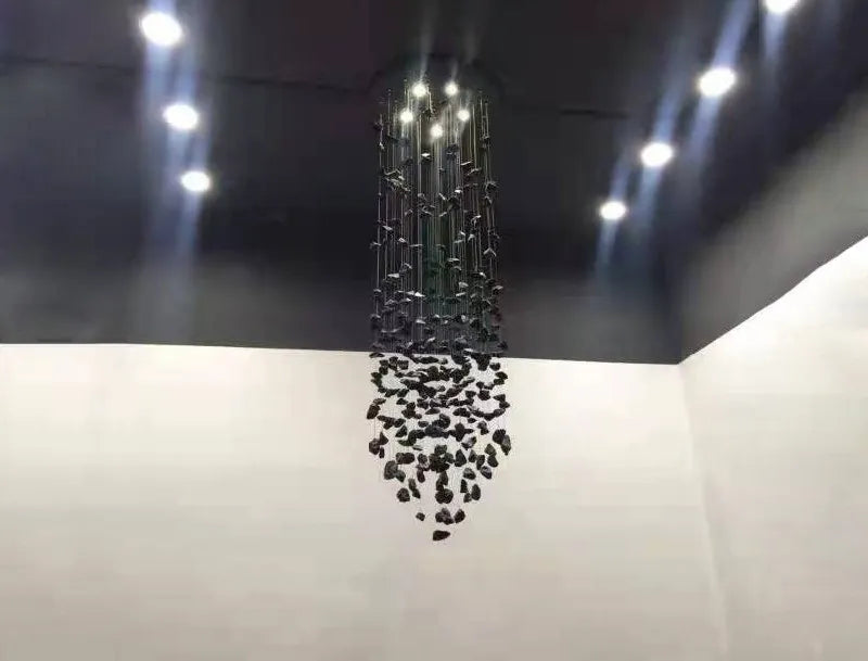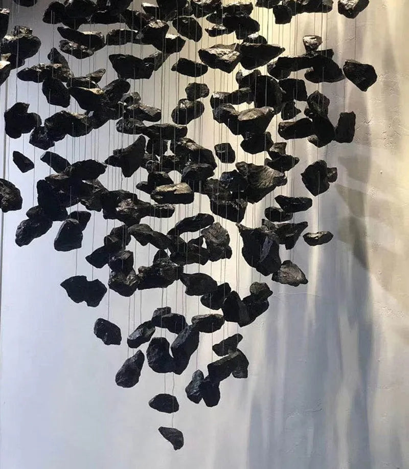 El candelabro Gaia deslumbra con su diseño artístico y natural, compuesto por múltiples piezas suspendidas que evocan piedras flotando en el aire. Ideal para recibidores, salas de doble altura o espacios amplios, crea un efecto visual impactante y elegante, llenando el ambiente de sofisticación y personalidad. Calidad premium y envío gratis en todo México.