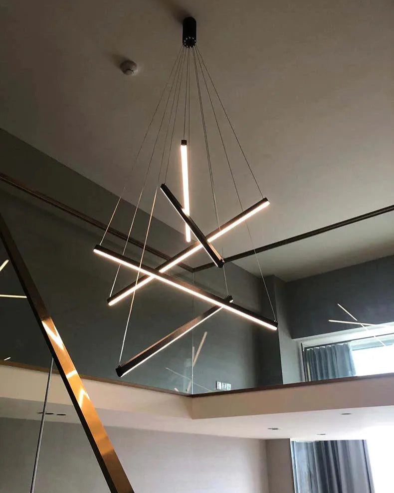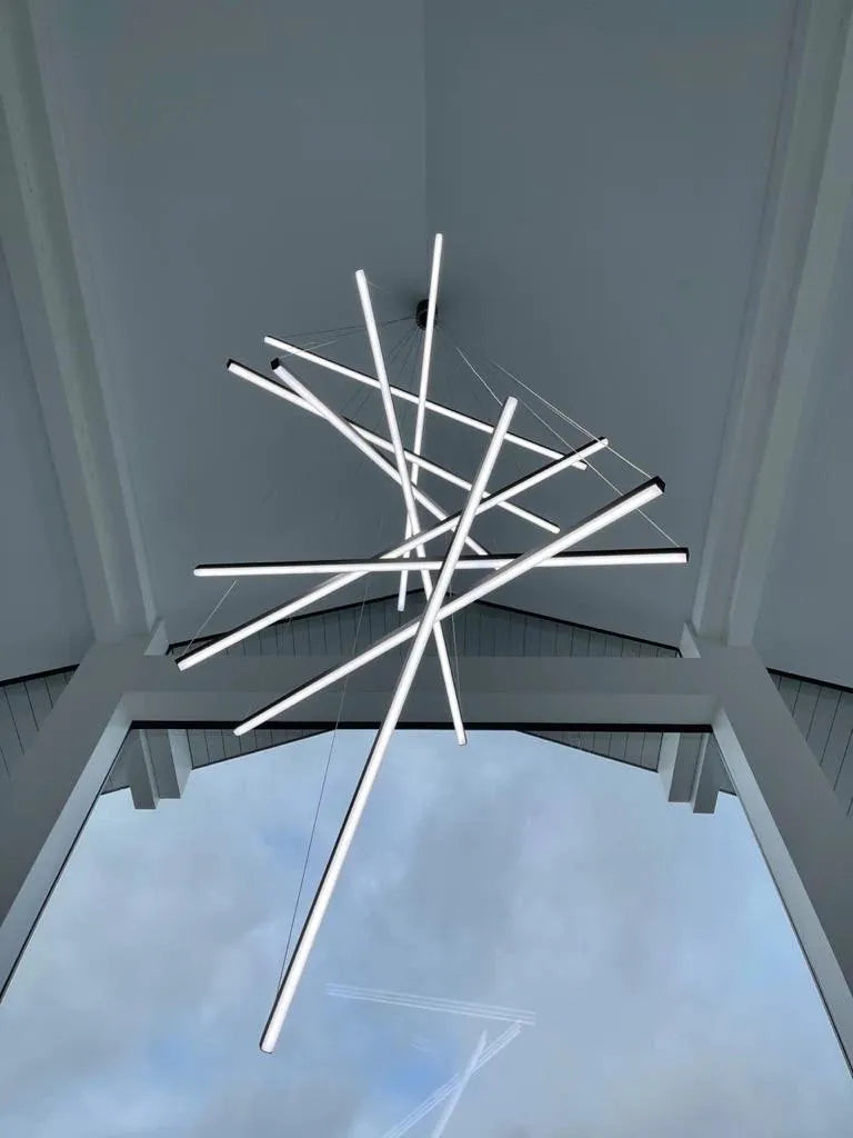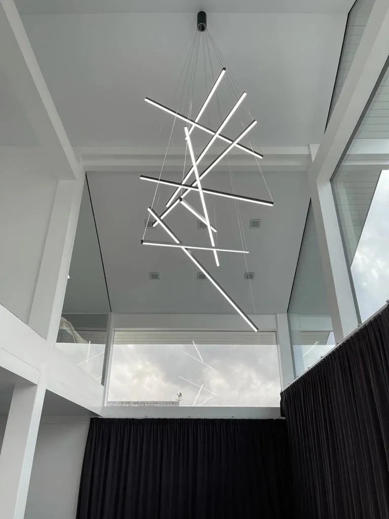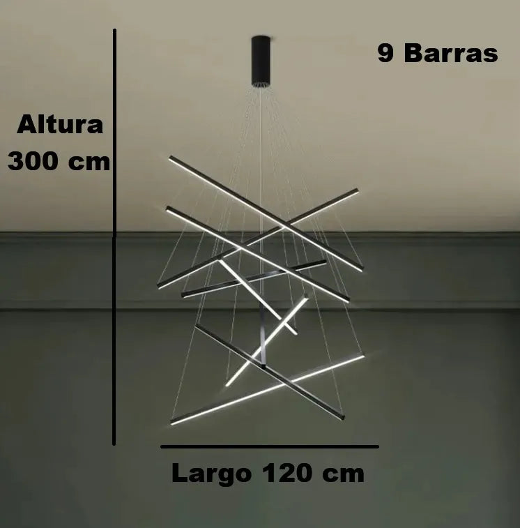 Precio regular $ 5,453.34El candelabro Nero destaca por su diseño moderno y vanguardista, compuesto por barras luminosas suspendidas en diferentes ángulos que crean un efecto escultórico e impactante. Ideal para salas de doble altura, comedores o espacios amplios, aporta sofisticación y personalidad, convirtiéndose en el centro de atención de cualquier ambiente. Calidad premium y envío gratis en todo México.