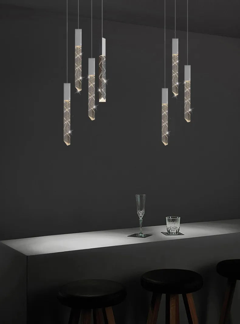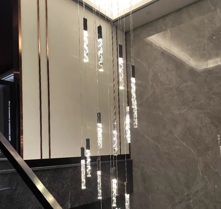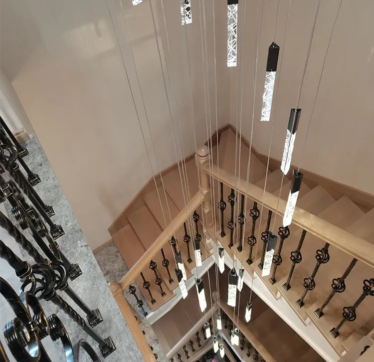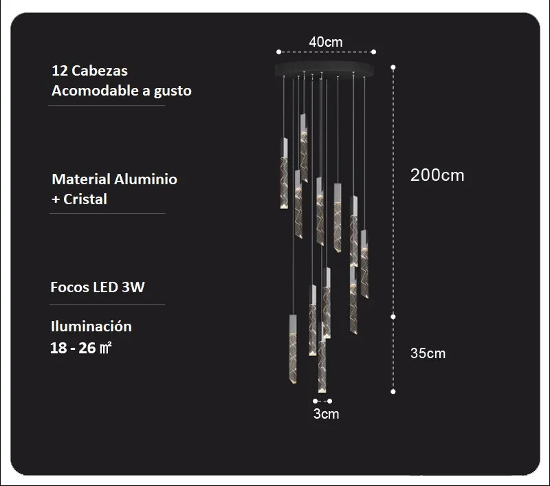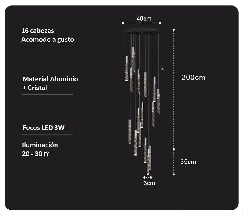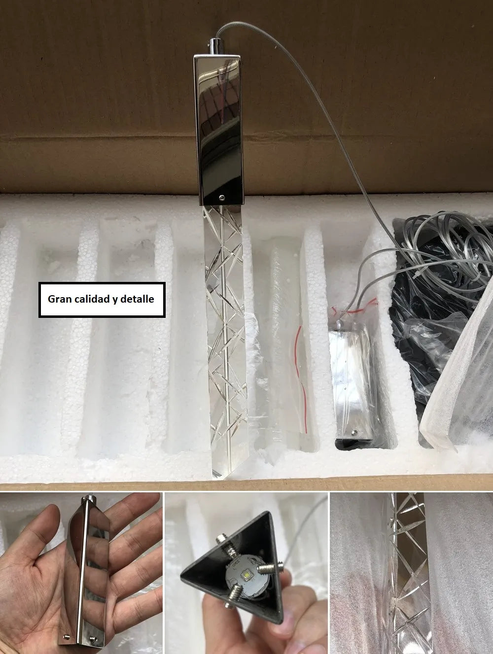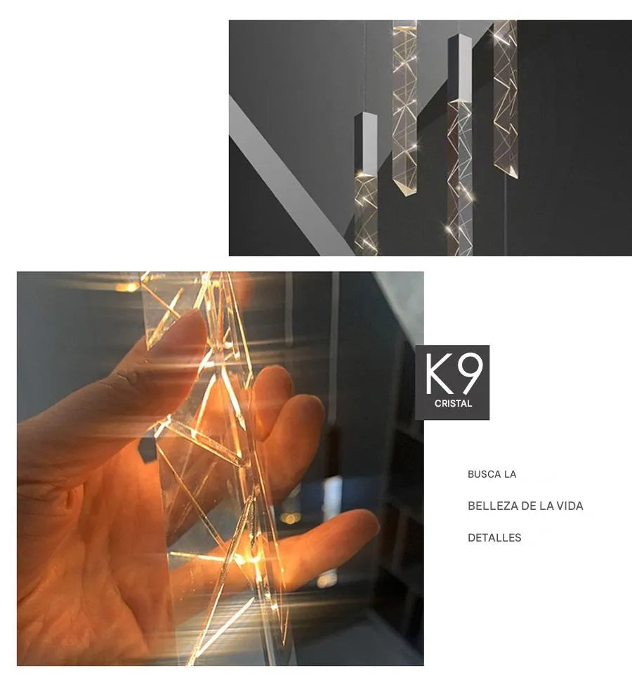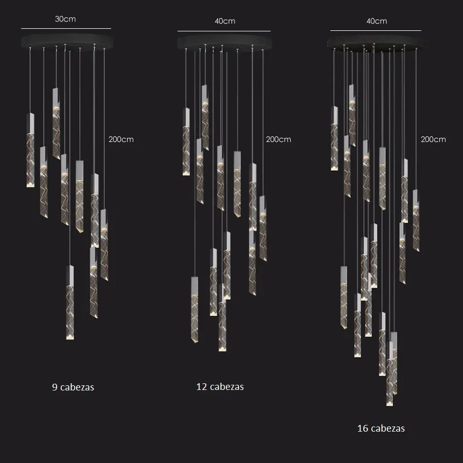 Precio regular $ 2,106.18El candelabro Obelisco destaca por su diseño moderno y sofisticado, con múltiples barras de cristal texturizado suspendidas a diferentes alturas y detalles dorados. Ideal para escaleras, vestíbulos o salas de doble altura, aporta un efecto visual impactante y elegante, iluminando el espacio con estilo y personalidad. Calidad premium y envío gratis en todo México.