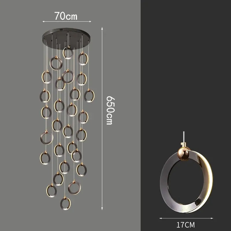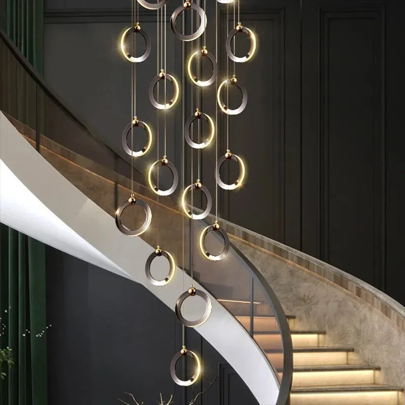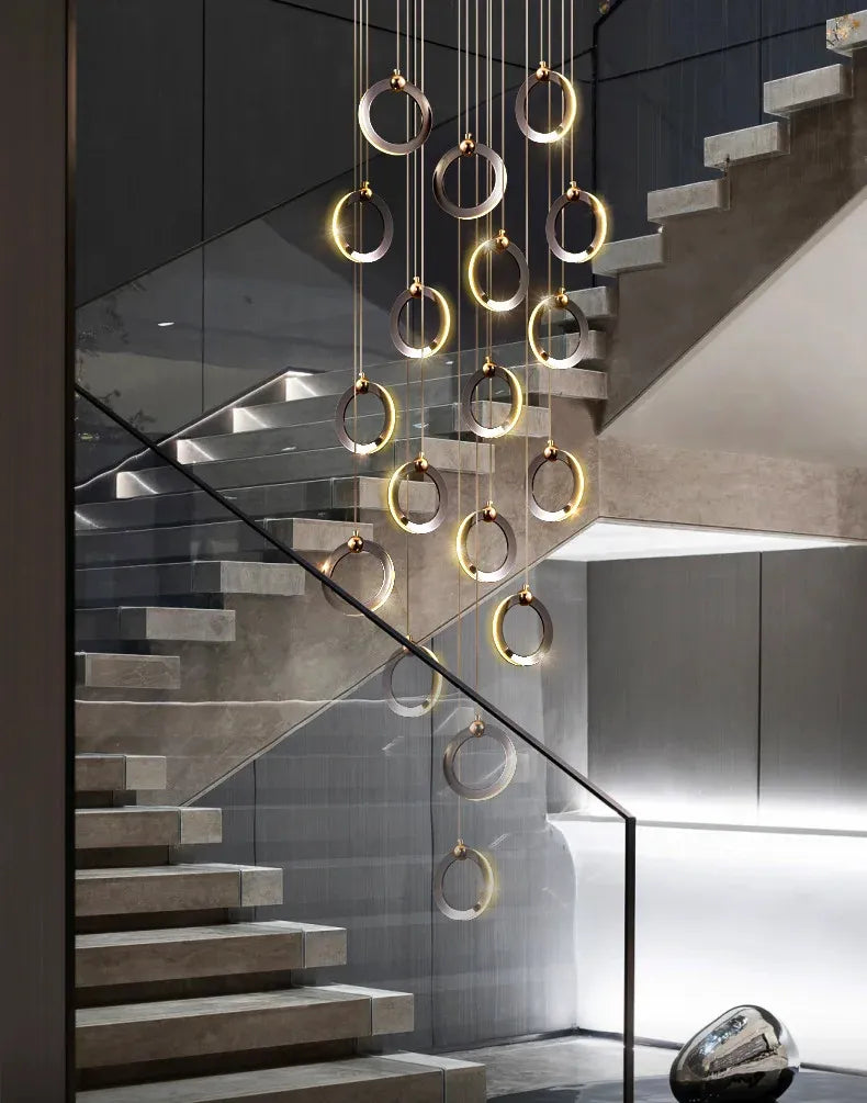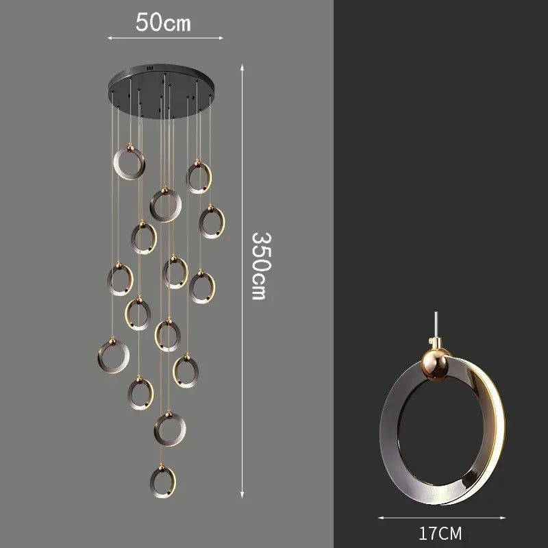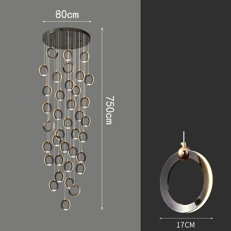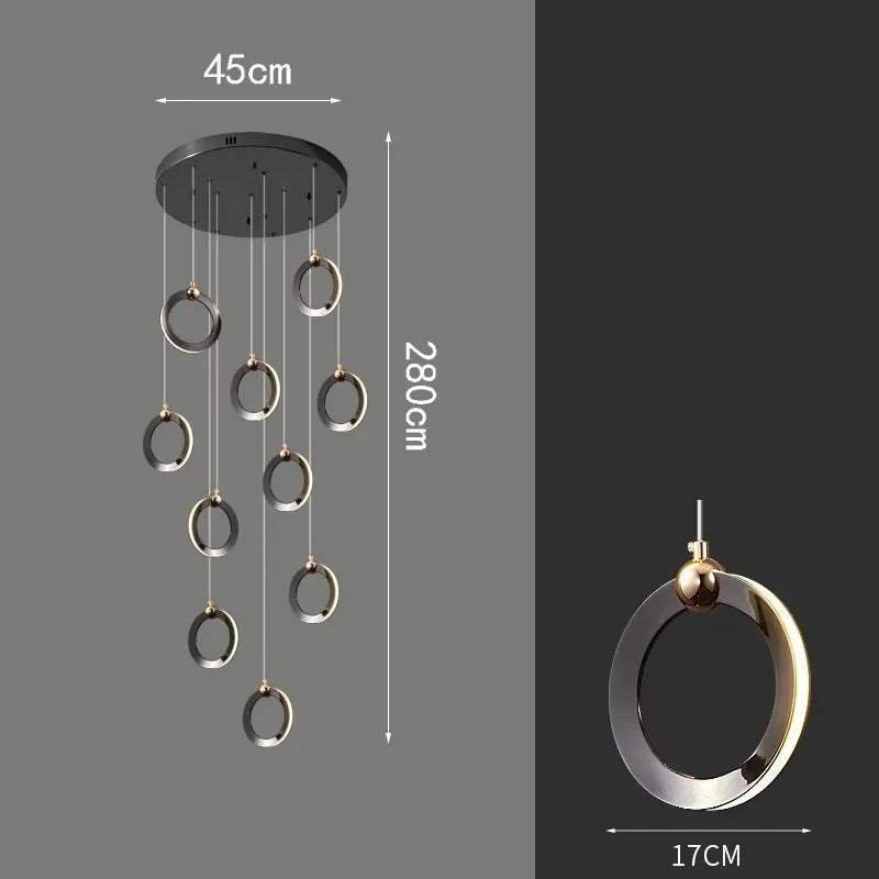 Precio regular $ 9,850.00El candelabro Perla Negra deslumbra con su diseño contemporáneo de aros suspendidos en elegante acabado oscuro y detalles dorados. Ideal para escaleras, recibidores o espacios de doble altura, aporta sofisticación y un toque artístico, iluminando el ambiente con estilo y modernidad. Calidad premium y envío gratis en todo México.