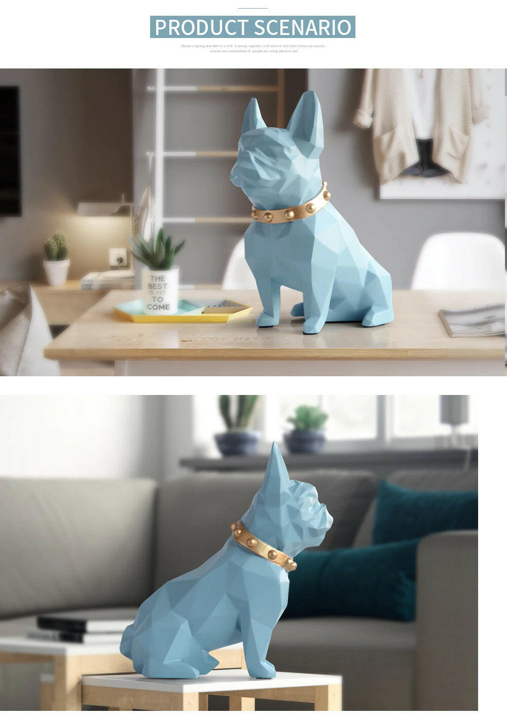 Hermosa figura de perro de resina ideal para decorar cualquier lugar con la gracia y ternura que estos animales saben brindar.