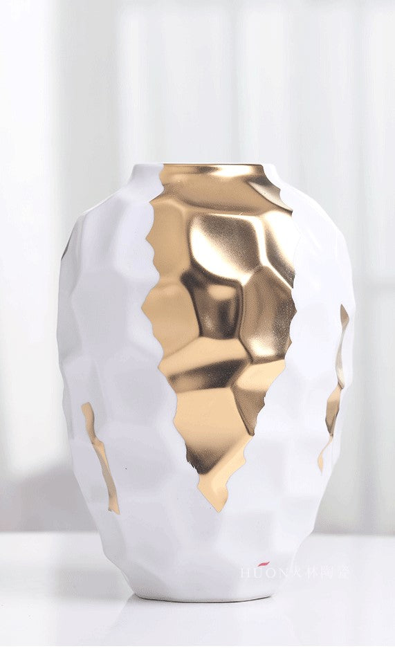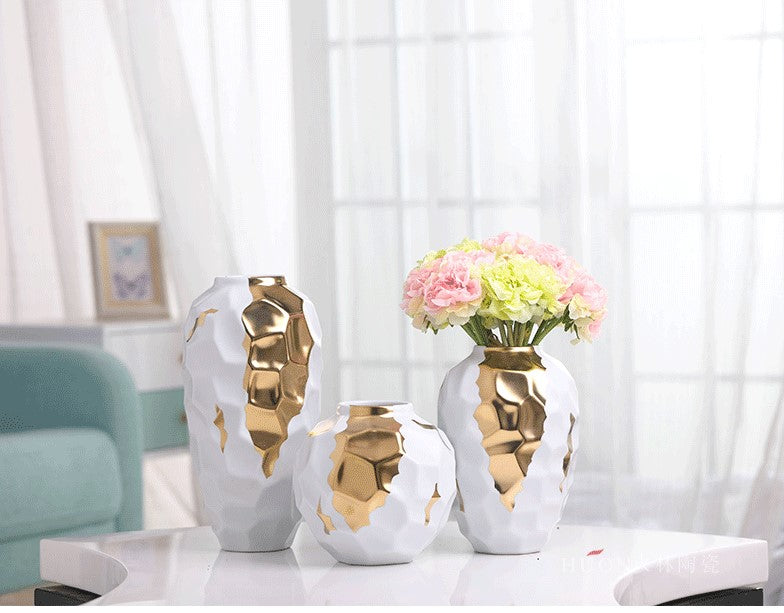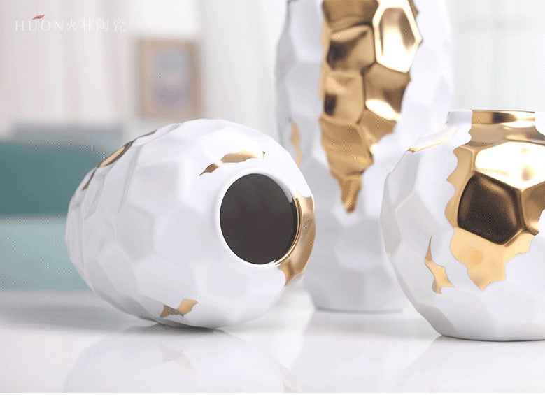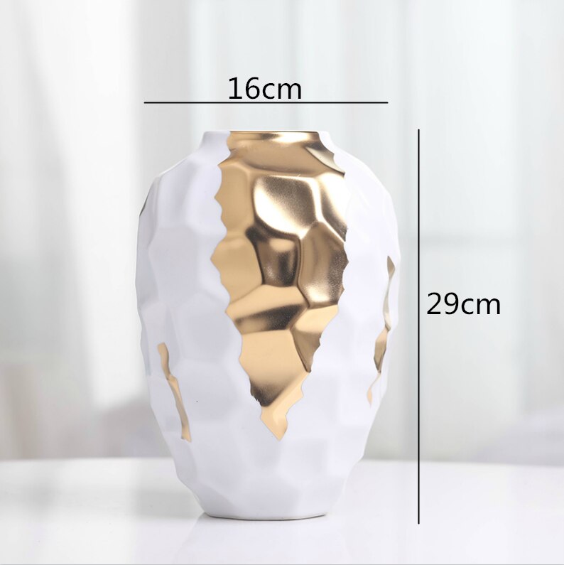 Precio regular $ 1,785.27Hermosa colección de jarrones cerámicos con incrustación de pintura dorada metálica, ideales para cualquier estilo de decoración, llena de diseño y elegancia cualquier espacio en tu hogar.
