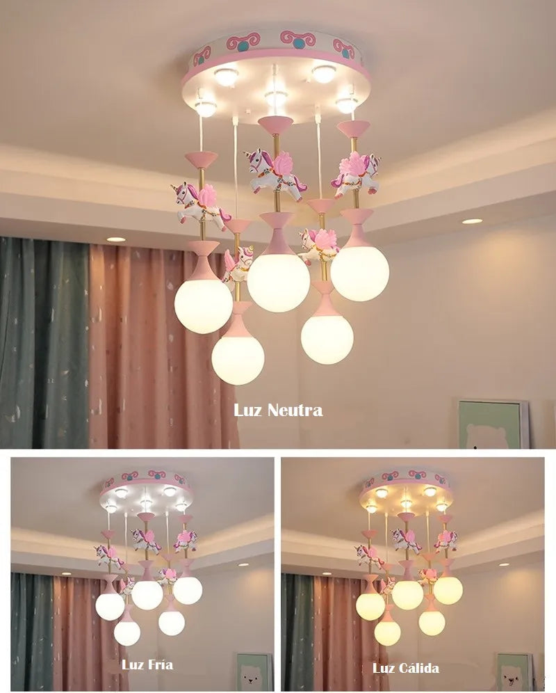 Precio regular $ 8,680.00Haz que la habitación de tus hijos cobre vida con la magia de la lámpara Carrusel. Inspirada en los clásicos carruseles de feria, su diseño lleno de color y unicornios giratorios crea un ambiente alegre, tierno y lleno de fantasía, ideal para dormitorios infantiles o salas de juegos. Haz que cada día sea una aventura llena de sueños con la lámpara Carrusel de Casa Fogo México. ¡El detalle perfecto para un cuarto lleno de alegría y fantasía!, envío gratis a todo México.