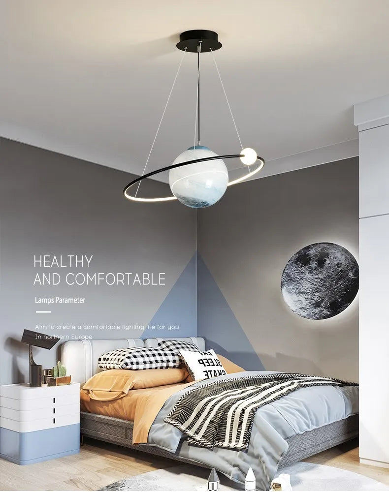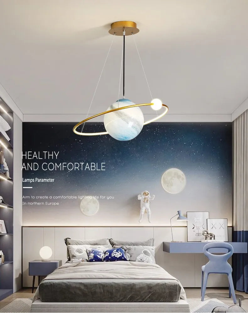 Precio regular $ 4,786.00¡Haz que el universo cobre vida en la habitación de tus hijos con la lámpara KIDS Planeta! Inspirada en el planeta Saturno, esta luminaria de techo presenta un diseño único con un planeta central rodeado de un anillo luminoso, simulando los anillos de Saturno. Disponible en tonos tierra y azul, es el complemento perfecto para crear un ambiente lleno de imaginación, aventuras y sueños espaciales. Deja que la lámpara Planeta acompañe los sueños y aventuras de tus pequeños astronautas. Descubre el poder de la imaginación y el diseño con la colección KIDS de Casa Fogo México, envío gratis a todo México.