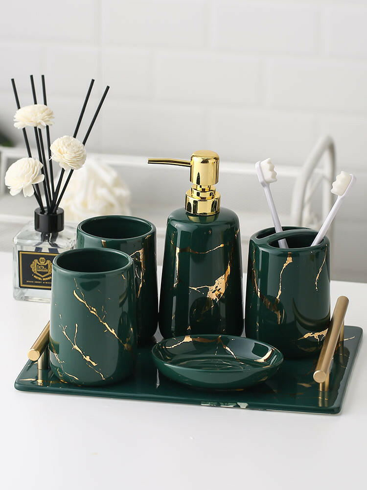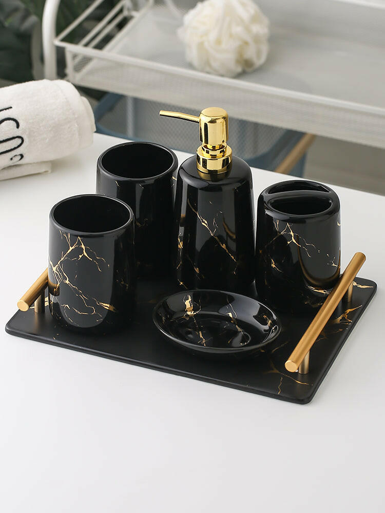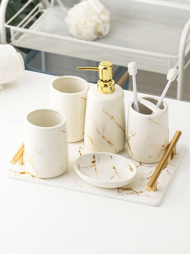 Regular price $ 2,160.22Create a unique atmosphere with this beautiful set of marble-style ceramic bathroom accessories, create a style of harmony and warmth for your bathroom.