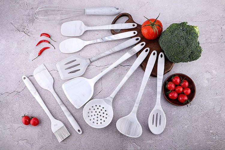 Regular price $ 1,494.06Beautiful set of kitchen utensils made of marble-style food grade silicone, they do not rust, they do not break or bend, they do not melt, they will not scratch your pan, totally safe, give your kitchen an unparalleled style with this beautiful set .